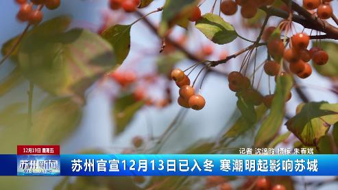 蘇州官宣12月13日已入冬 寒潮20日起影響蘇城